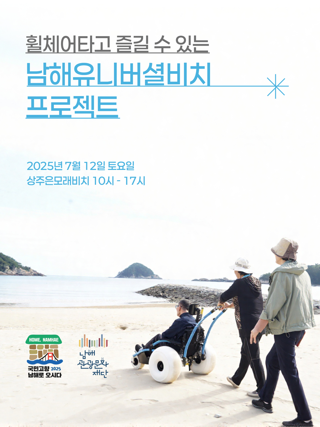 남해군관광문화재단에서, 오는 7월 12일(토) 상주은모래비치 일원에서 관광취약계층의 관광접근성 향상 등을 위한 “남해 유니버셜 비치 프로젝트”를 진행합니다.